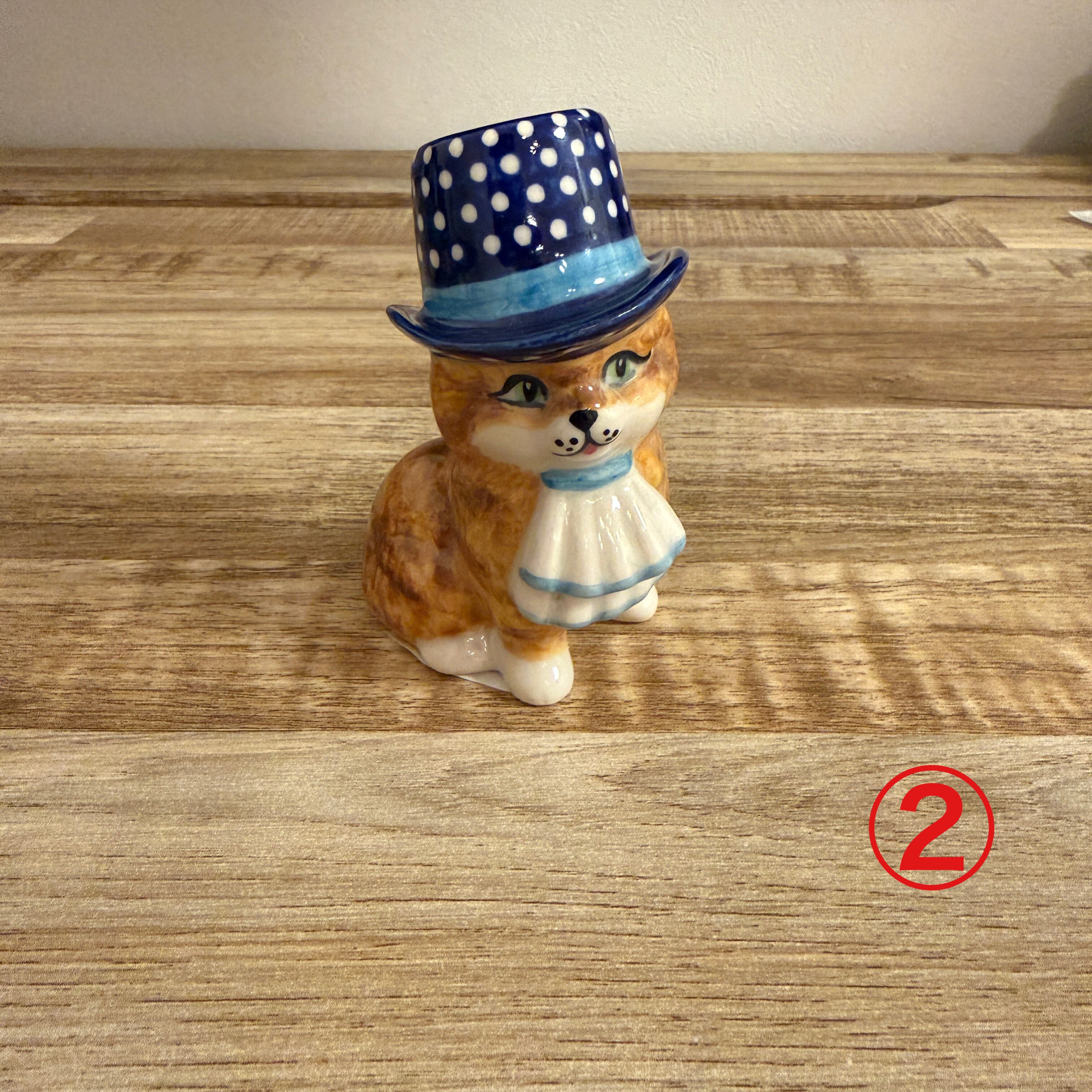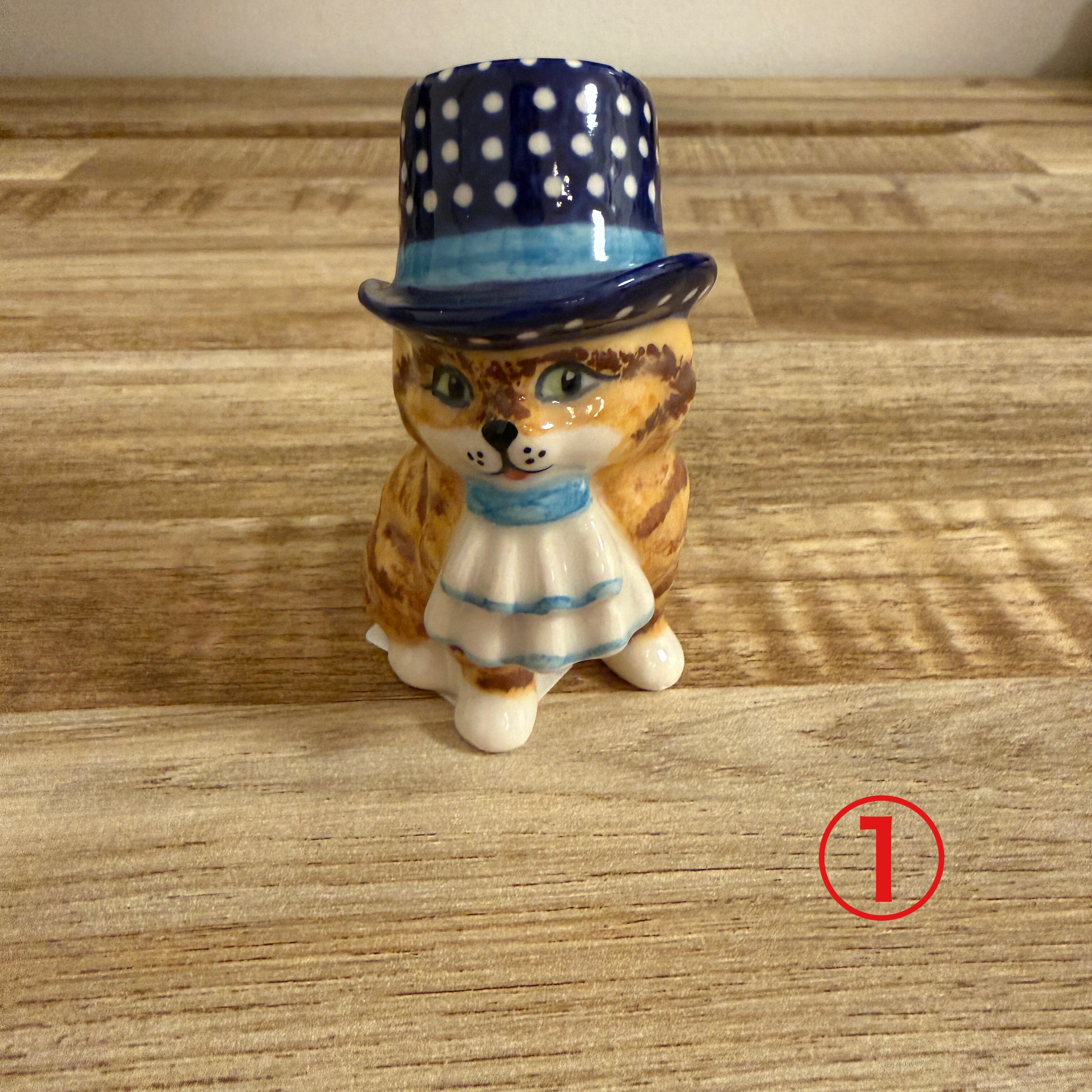 フェニックス社製 155 帽子を被った猫 サイズ(約):横 5cm×高さ9.5cm ★ポーリッシュポタリーは絵付けも成型も、ひとつづつ手作りのため、気泡や傷、ちょっとがたついたり、ムラがあったり、色の濃淡の違いなどがあります。 そのため、既製品のように完璧な商品はございません。一つとして同じものがない、特別な商品としてご理解下さると幸いです。 そのため、明らかな割れ、亀裂以外は、ポーリッシュポタリーの特性(上記に記載の状態)として返品対象にはなりませんのでご了承ください。